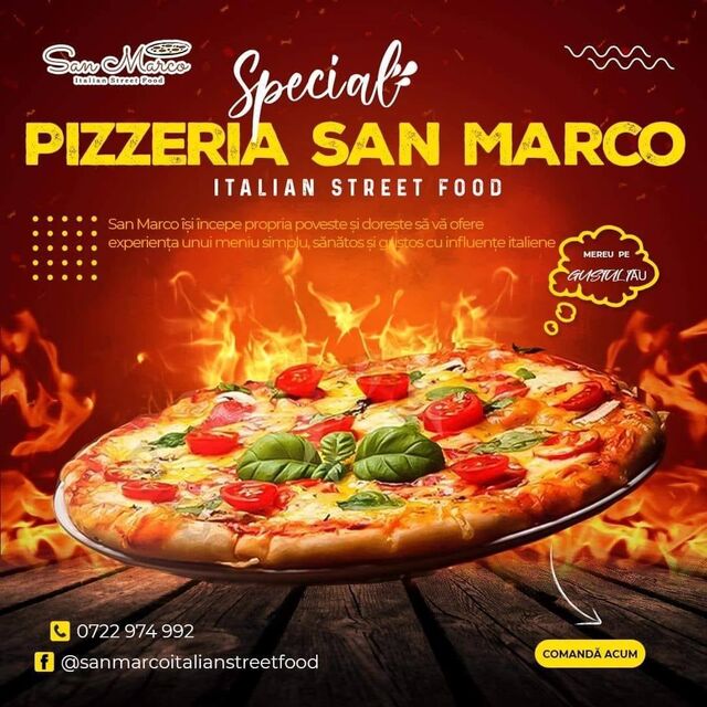 Orice poveste are un inceput si orice experienta are in spatele ei o poveste. San Marco isi incepe propria poveste si doreste sa va ofere experienta unui meniu simplu, sanatos si gustos cu influente italiene. Fie ca e vorba de gustul autentic al unei pizza, de savaoarea pastelor sau deliciul unui desert racoritor, San Marco isi propune prin acestea sa va trimita cu gandul la o trattoria italiana pe care poti sa o gasesti doar pe strazile inguste si totodata primitoare din peninsula italica. Gustos, sanatos si autentic e ceea ce dorim noi sa va oferim!
